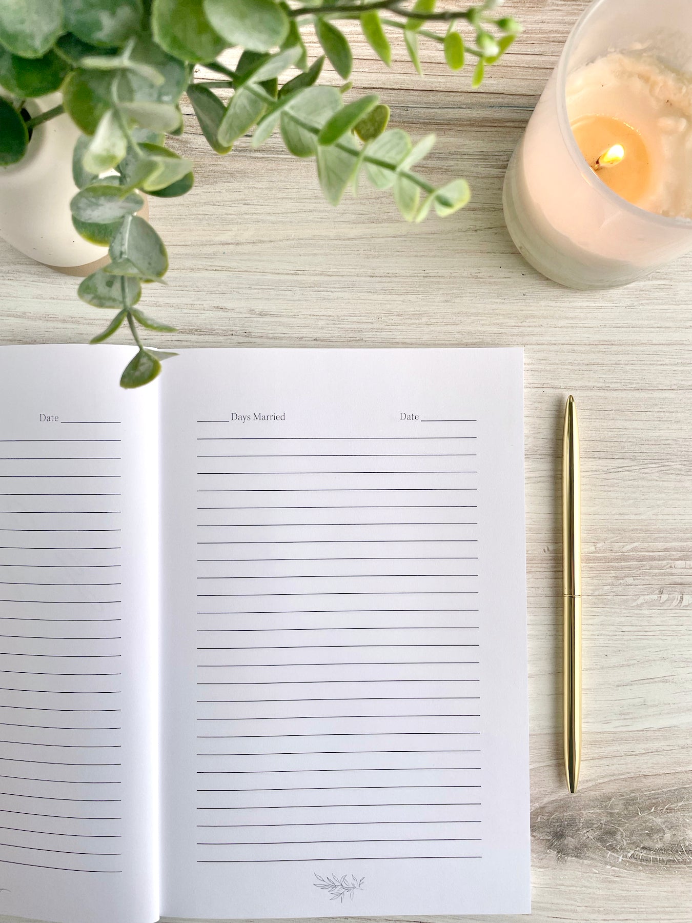 Our First Year of Marriage provides 125 lined pages to reflect, with headers to notate new entries with dates and number of days married.