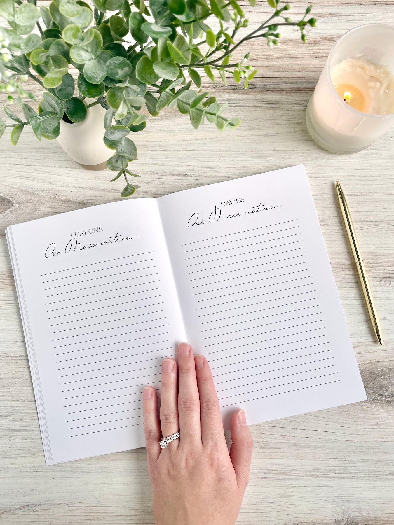 DAY ONE/DAY 365 pages include 8 prompts to show how much can change in a year — comparing what life is like on your first day of marriage and on your one-year anniversary.